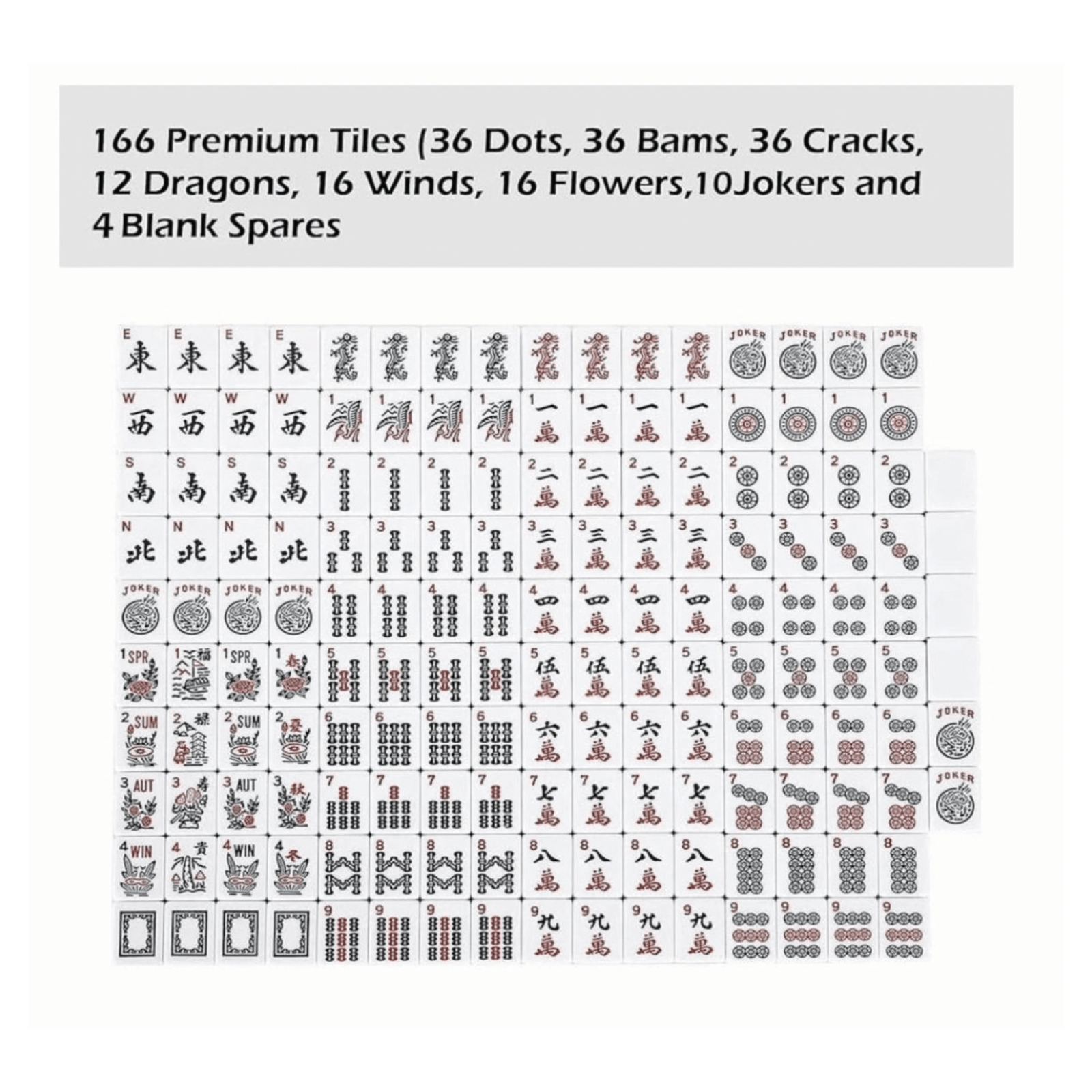 - 166 standard-size white Mahjong tiles